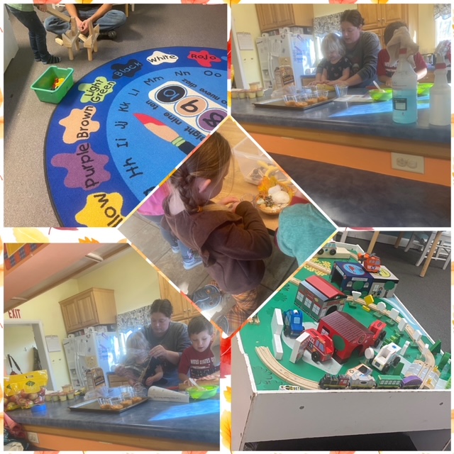 We were fortunate enough to be visited by some of the RJSHS Student Council members before the Thanksgiving break this year. To prepare, the kids helped us make “Pumpkin Pie in a Cup” for a special snack. We also made leaf art that day, played with our Fall sensory bin and painted Turkeys with the big kids.